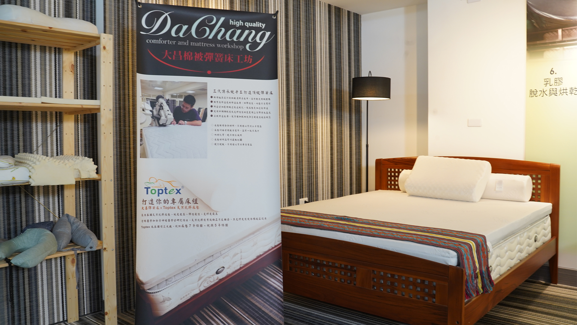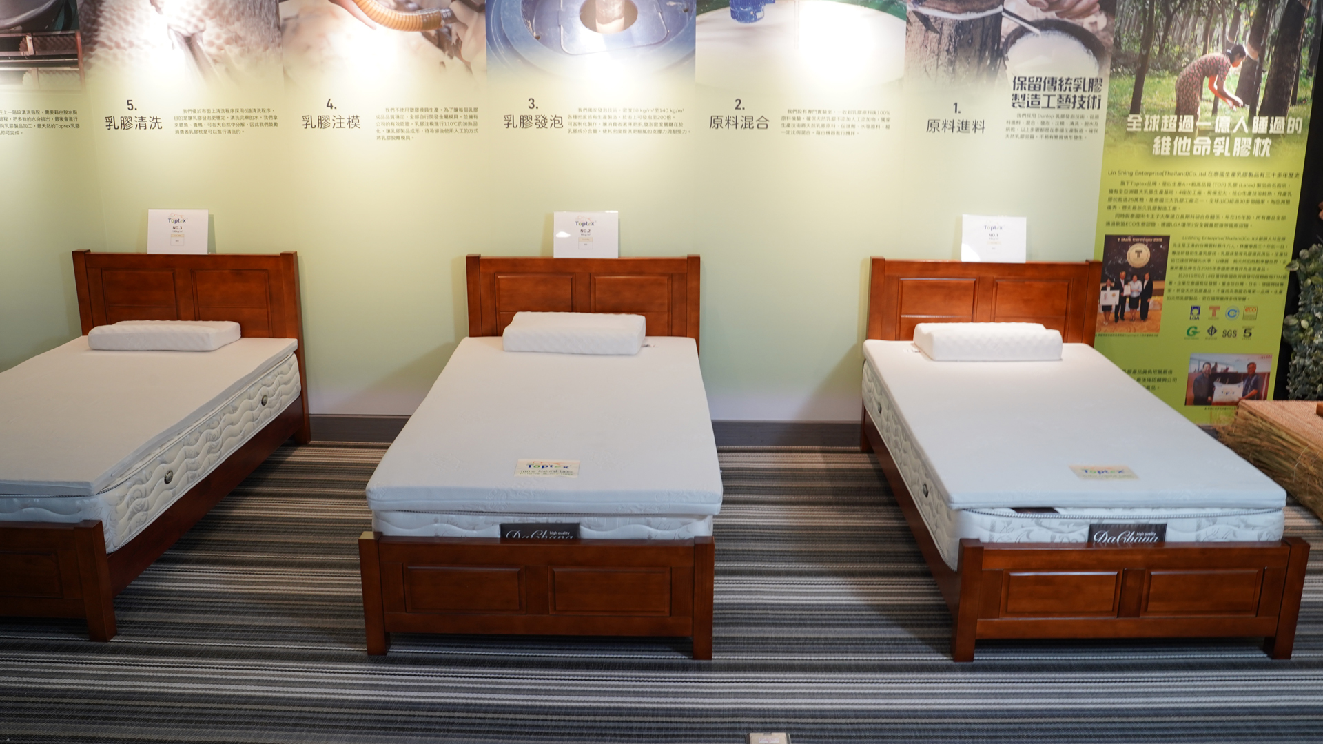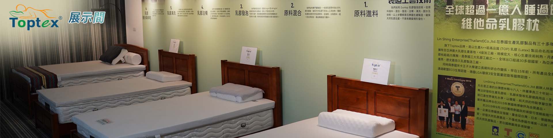 Toptex具有優異乳膠生產技術,展示中心提供乳膠腰靠、乳膠露營墊、乳膠靜坐墊、乳膠坐墊及乳膠抱枕,歡迎各位粉絲朋友前來體驗。