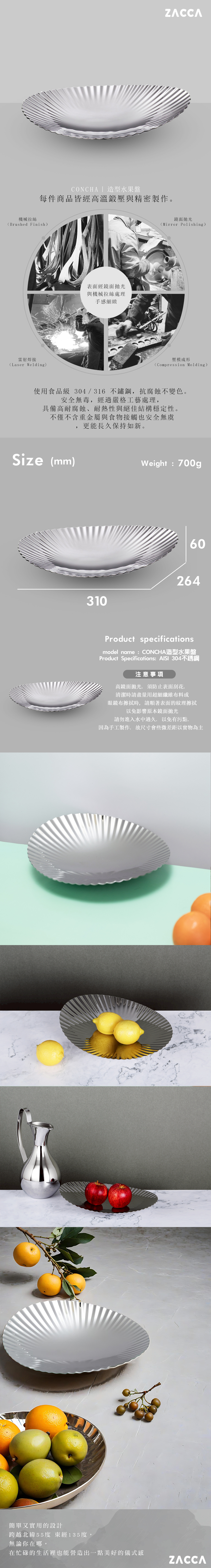 本款不鏽鋼水果盤融合鏡面拋光質感與手工塑形的流線輪廓,