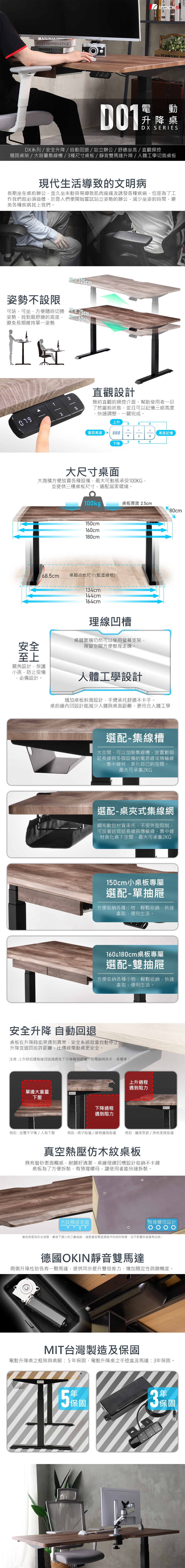 irocks D01-DX 電動升降桌 菸草橡木紋 150*80 公分