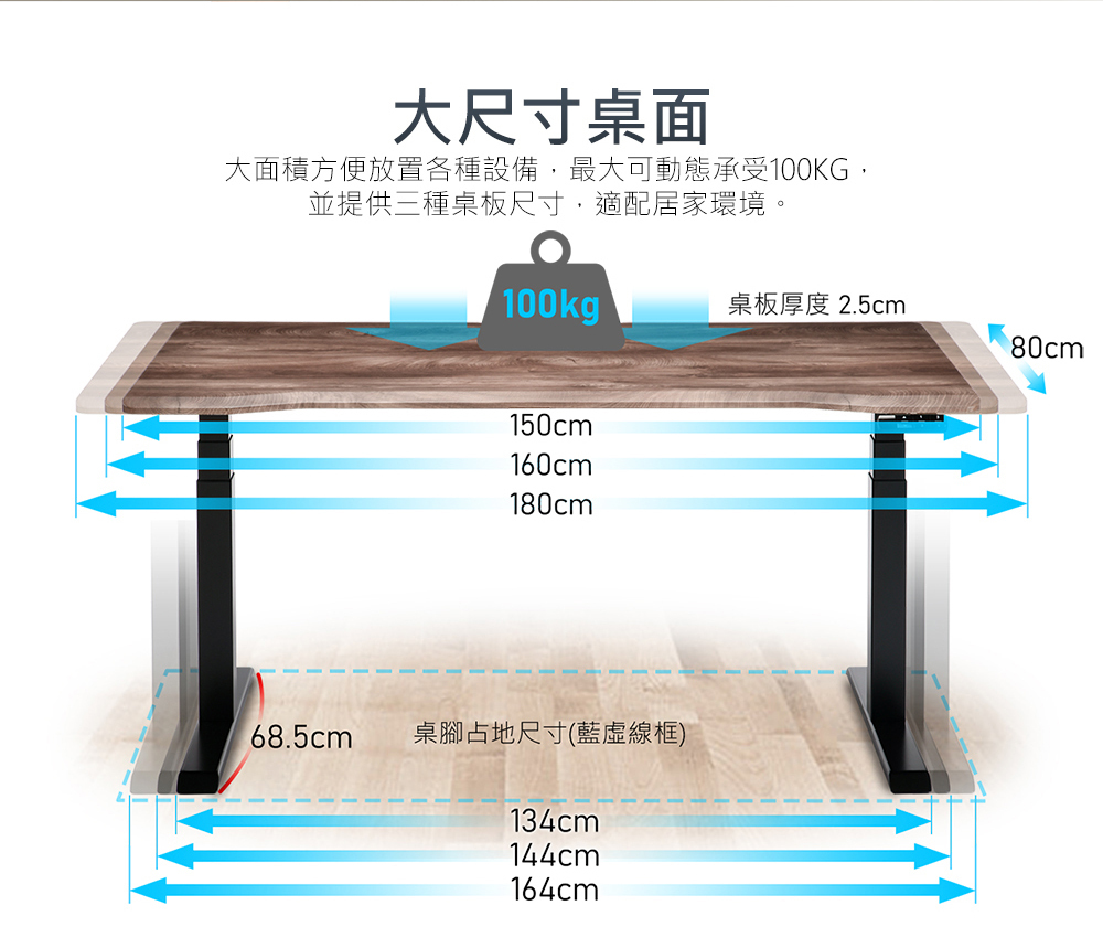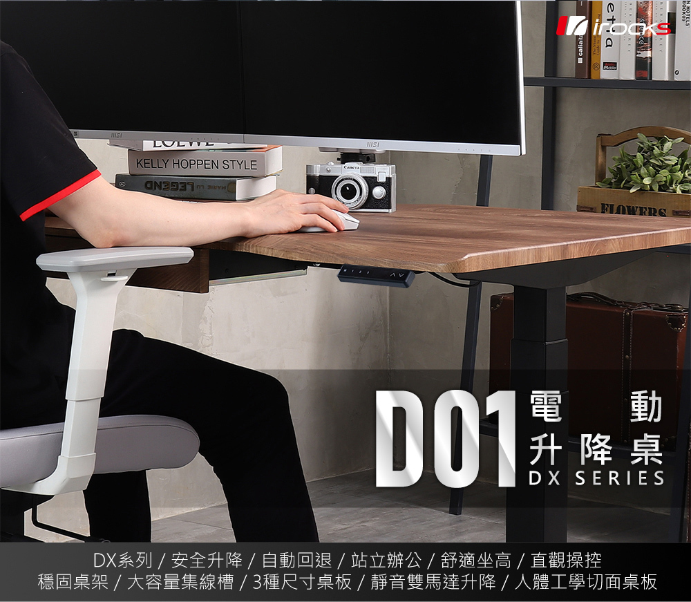 irocks D01-DX 電動升降桌 菸草橡木紋 160*80 公分