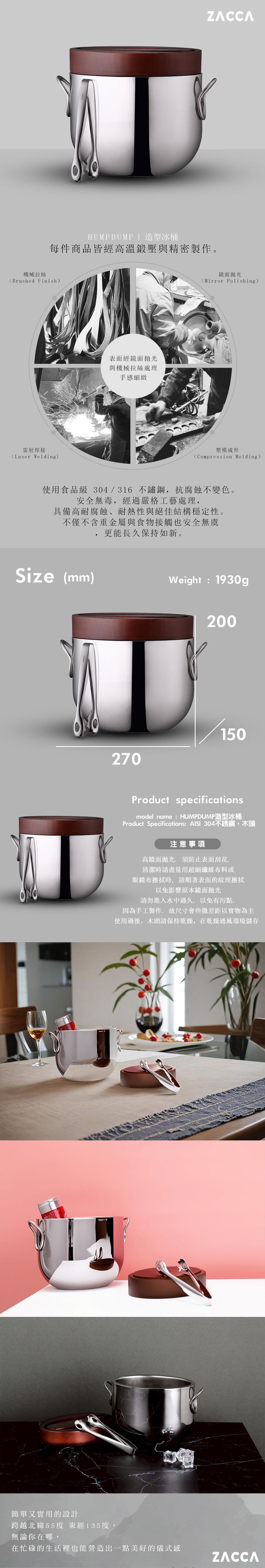 本款不鏽鋼冰桶融合鏡面拋光質感與手工塑形的流線輪廓,