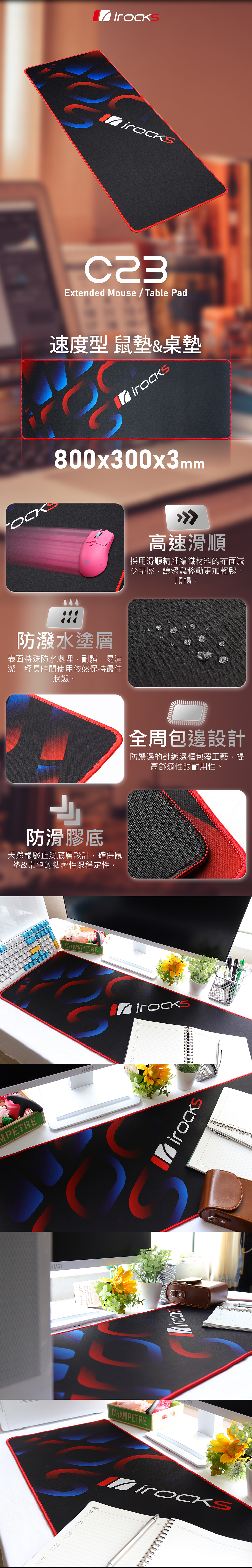 •天然橡膠止滑底層設計,確保鼠墊的黏著性跟穩定性