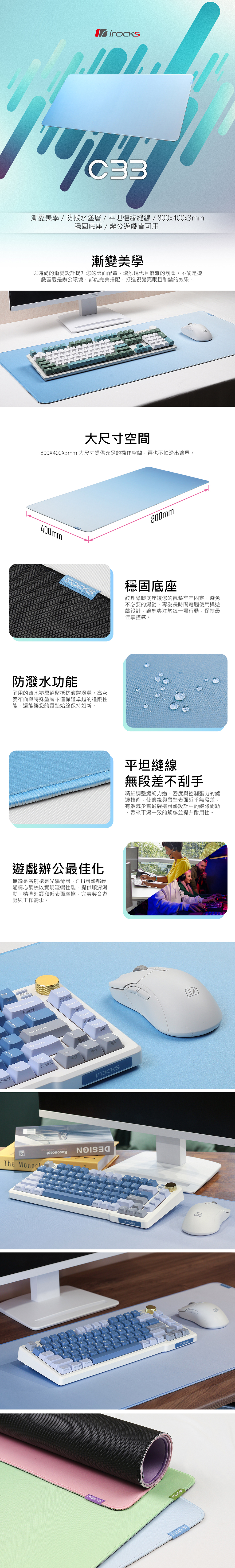 irocks C33 大尺寸滑鼠墊&桌墊-極光藍漸層