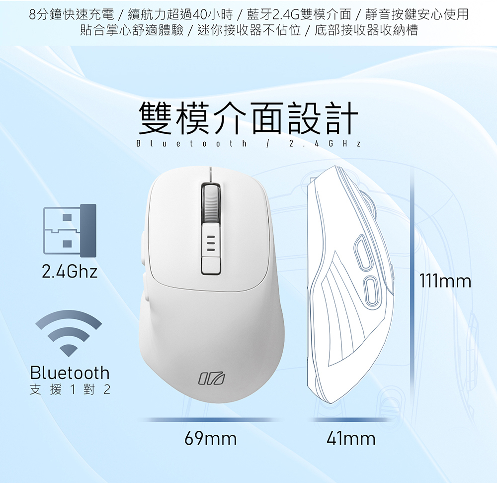 l 藍牙、2.4GHz無線雙模 ,彈性自由選擇