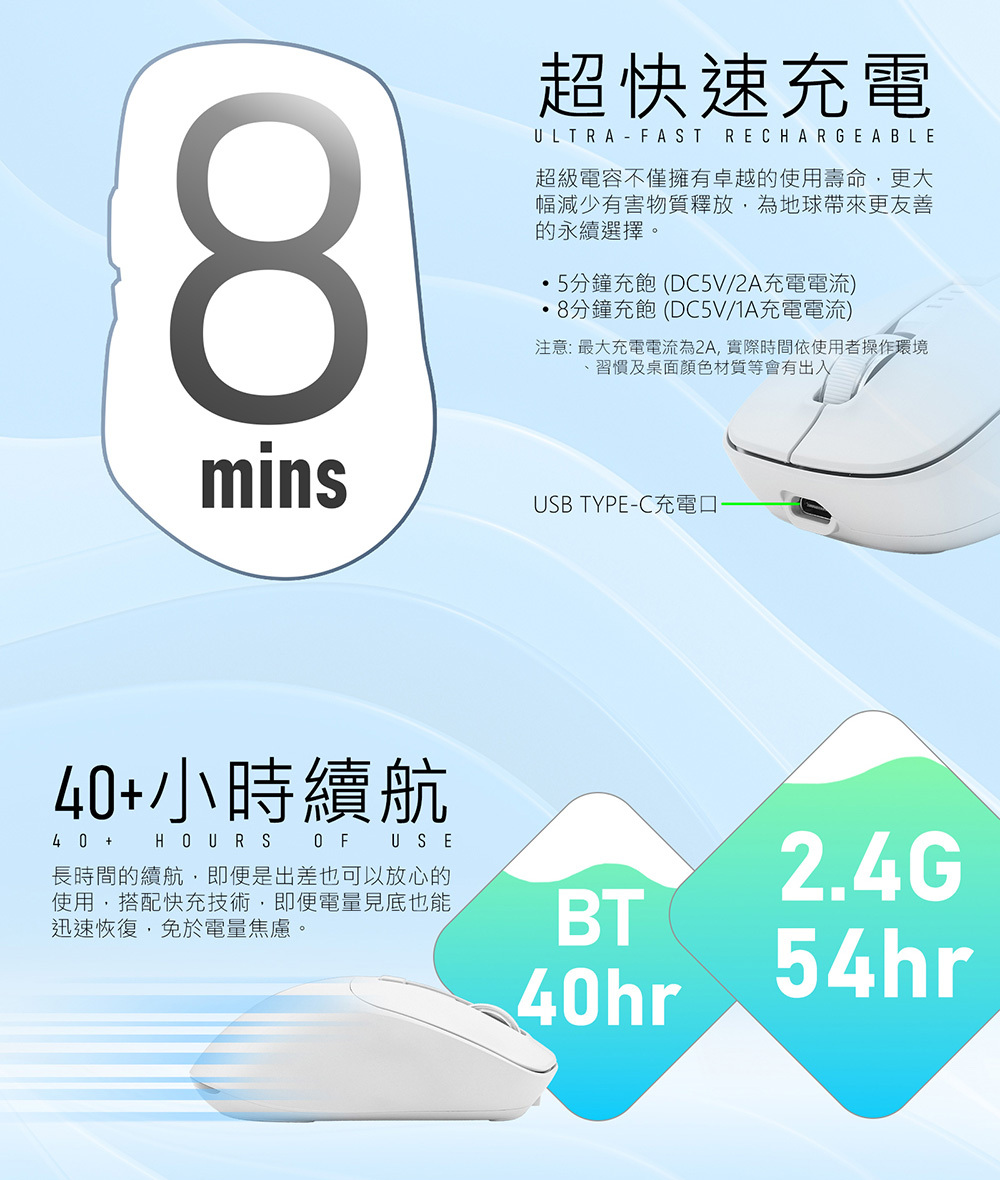 l 充電快速,8分鐘充飽,可連續使用約40多小時