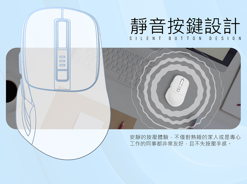 l 左右鍵採用靜音開關設計,提供舒適寧靜的使用環境