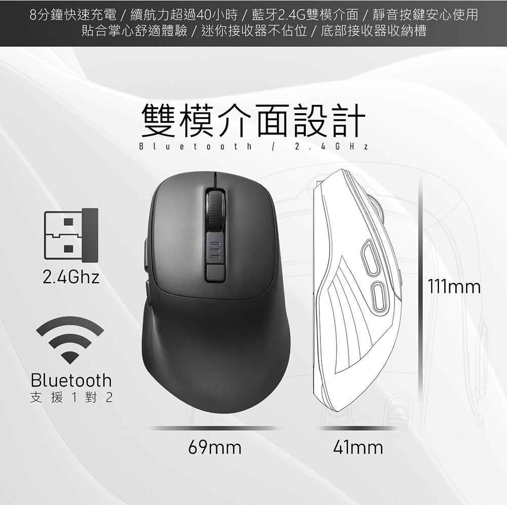 l 藍牙、2.4GHz無線雙模 ,彈性自由選擇