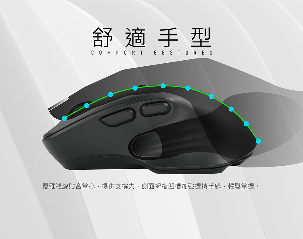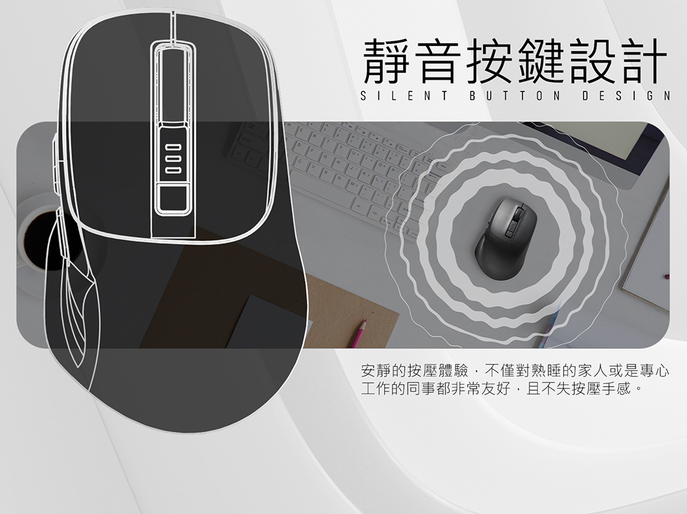 l 左右鍵採用靜音開關設計,提供舒適寧靜的使用環境