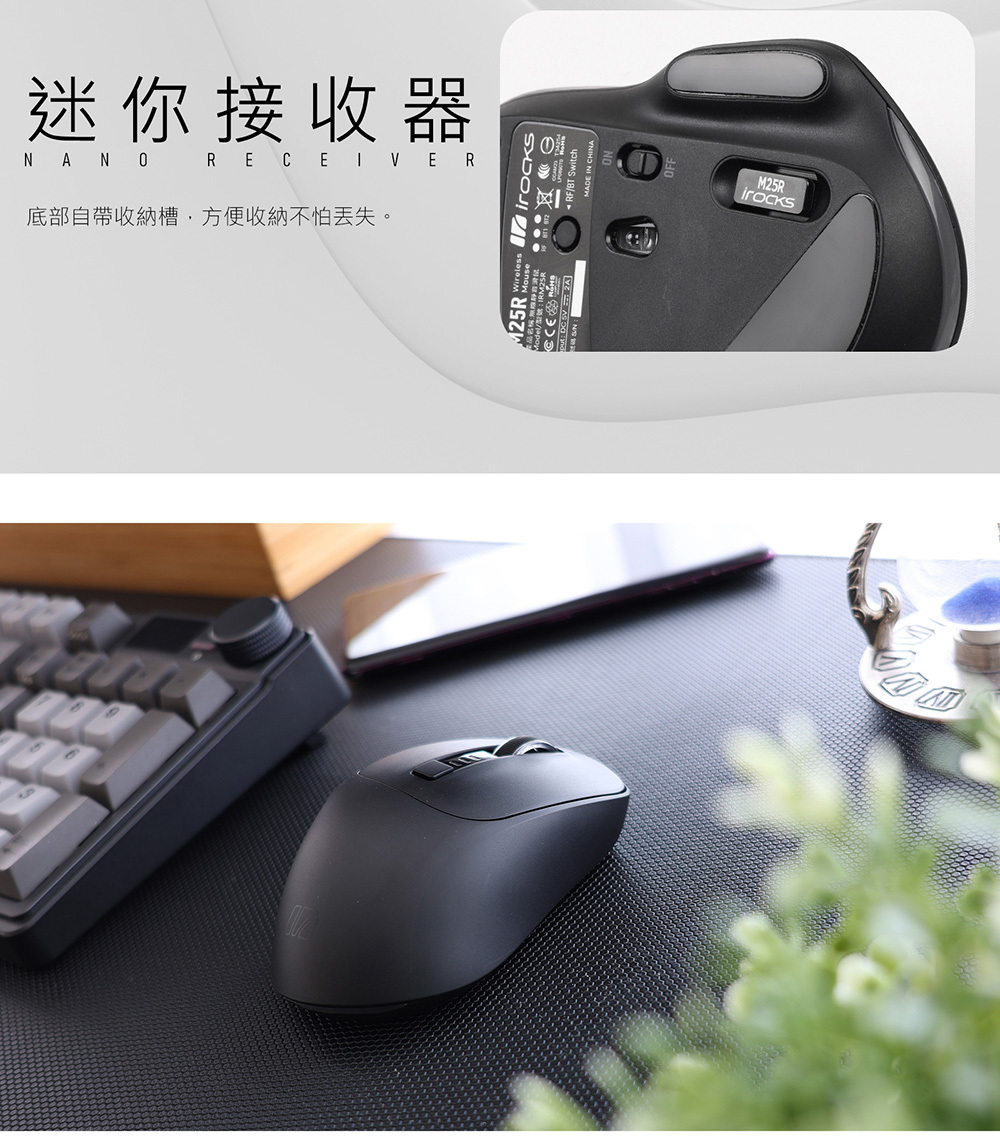 irocks M25R 快充式 無線 藍牙 雙模 靜音滑鼠 黑色