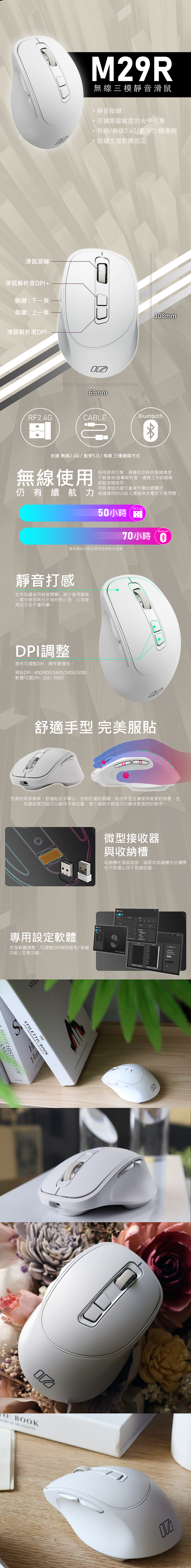 iRocks M29R 藍牙無線三模 光學靜音滑鼠 -白色