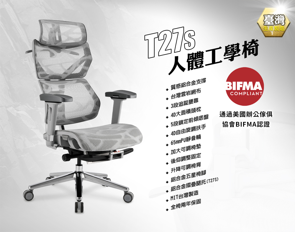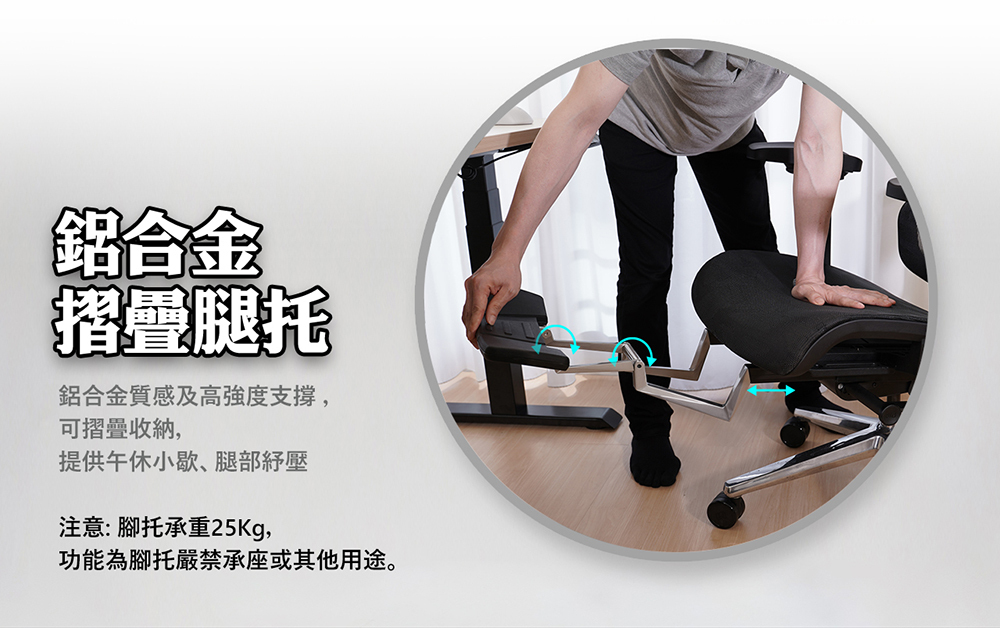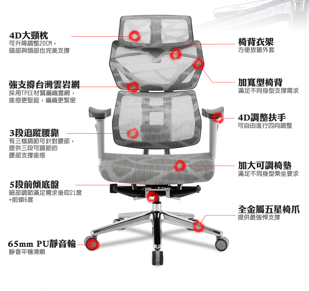 •椅背型式 : 舒適全網布四段升降椅背(含衣架功能)