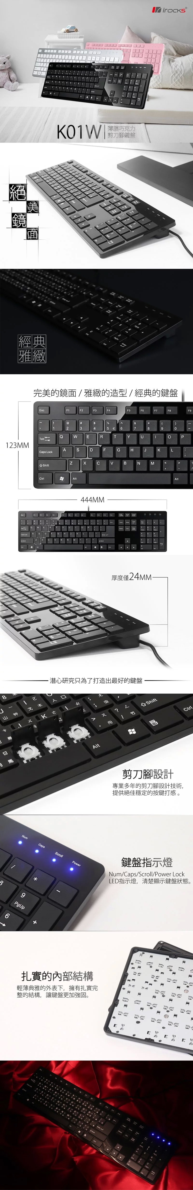 irocks K01巧克力超薄鏡面有線鍵盤_黑色
