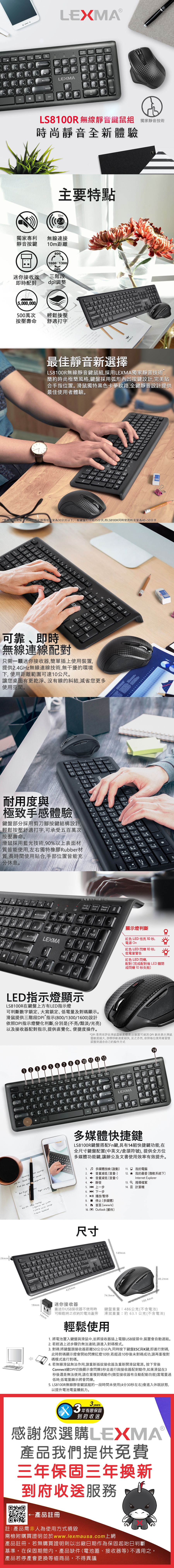 品名:LEXMAL8100R無線靜音鍵鼠組
