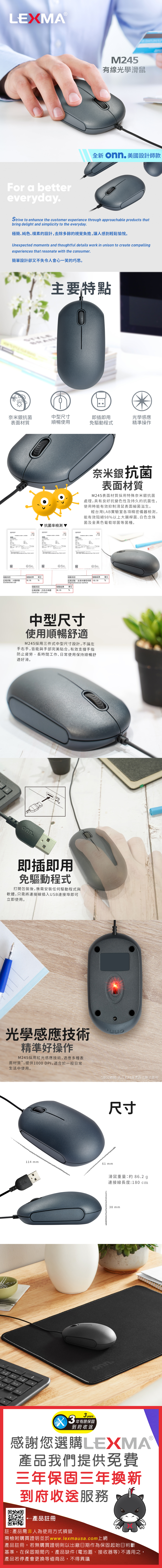 品名:LEXMA M245 有線光學滑鼠
