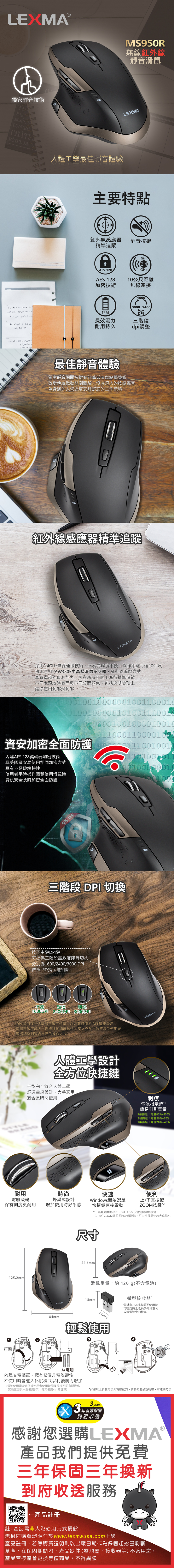 品名:LEXMA MS950R 無線紅外線靜音滑鼠